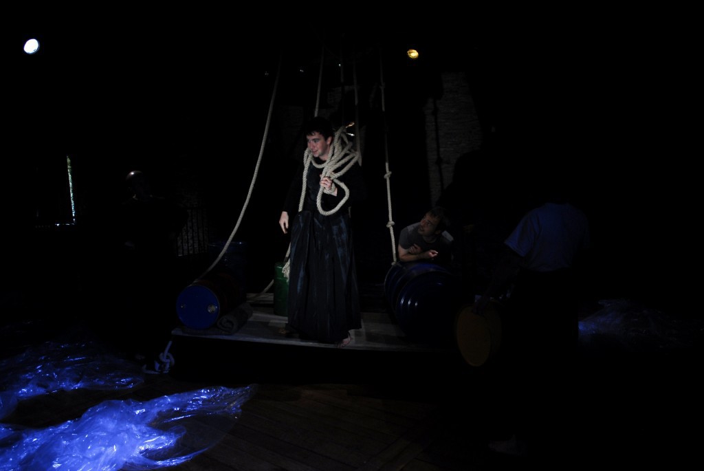 Sur le plateau, six acteurs, danseurs ou musiciens. Ils racontent l'histoire autant qu'ils la jouent. Le texte, parfois lyrique, emmène vers la danse et le mouvement. Le rôle principal est incarné par un danseur. Il danse tandis qu'un autre dit ses mots : un langage se substitue à l'autre, le prolonge, se superpose à lui, s'efface dans une dynamique qui structure le spectacle. Les voix se déploient dans des jeux de répétition, de retour en arrière, d'anticipation, de recherches rythmiques, d'accentuation des éclats et des silences. Le texte est parfois dit dans les deux langues, la traduction française et des éléments du texte anglais original.