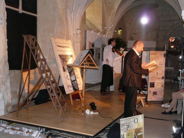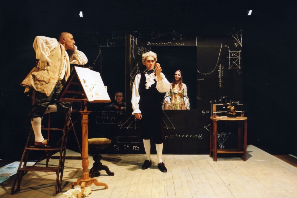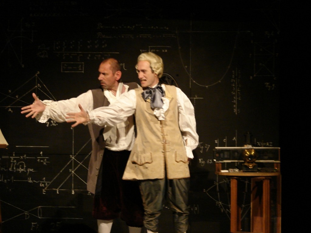 Après plusieurs années de diffusion intensive d'une version "grand format" du spectacle (7 comédiens, spectacle d'une heure trente, scénographie imposante), la compagnie a fait le choix de poursuive l'aventure avec une version de "poche", plus légère et plus brève (1 h). La mise en scène en est d'autant plus enlevée, et veut montrer l'enthousiasme des chercheurs, la passion qui se dégage de leur aventure, et le caractère romanesque de ses péripéties. Elle joue du tressage de différentes formes, du théâtre-récit à la mise en situation des événements, voire à des passages plus franchement tournés vers le théâtre musical, lorsqu'il s'agit de plonger dans les mots et les articles, donnés à entendre de façon chorale, parlés ou chantés. Le violoniste est lui-même tantôt dans la fiction, tantôt en dehors, alternant entre fragments contemporains et répertoire d'époque.
